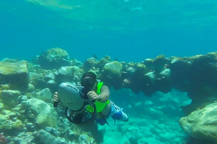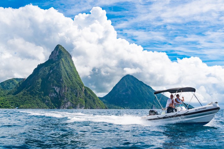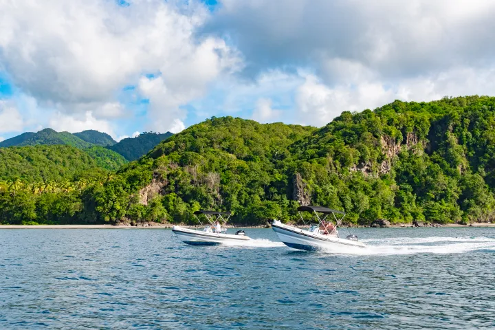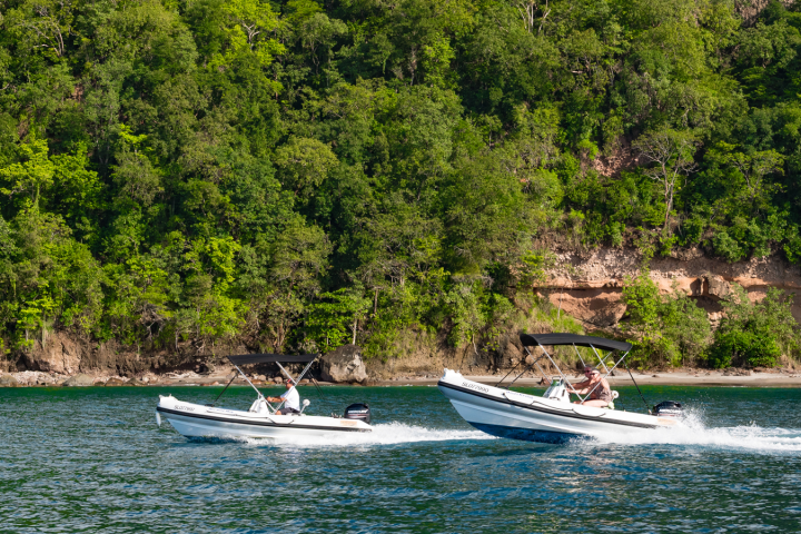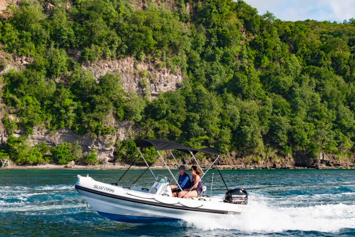 Leave the crowds behind, drive yourself and your partner in a 17′ Atomix speed boat along the picturesque west coast to the island’s main attraction area of Soufriere. Once there you will have the most spectacular view of the Pitons with the volcano in the background. That’s not all! Once under water, the area offers some of the Caribbean’s best snorkeling. What better way to view the reefs than being propelled along effortlessly with your own power snorkel? This experience is a must if you have never captained a boat or tried a sea scooter.